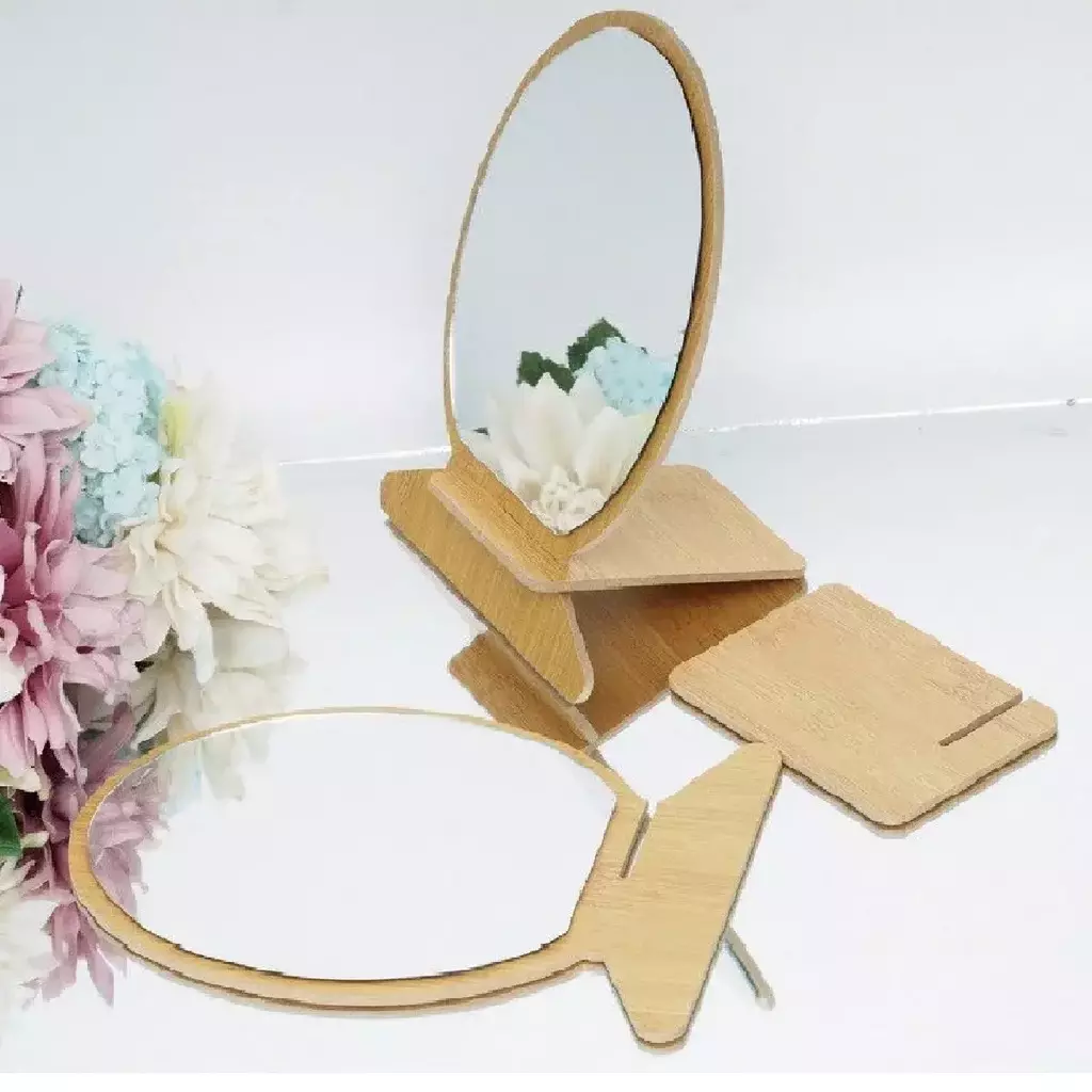 10 Espelhos Oval Redondo De Mesa e Mão Em MDF Maquiagem