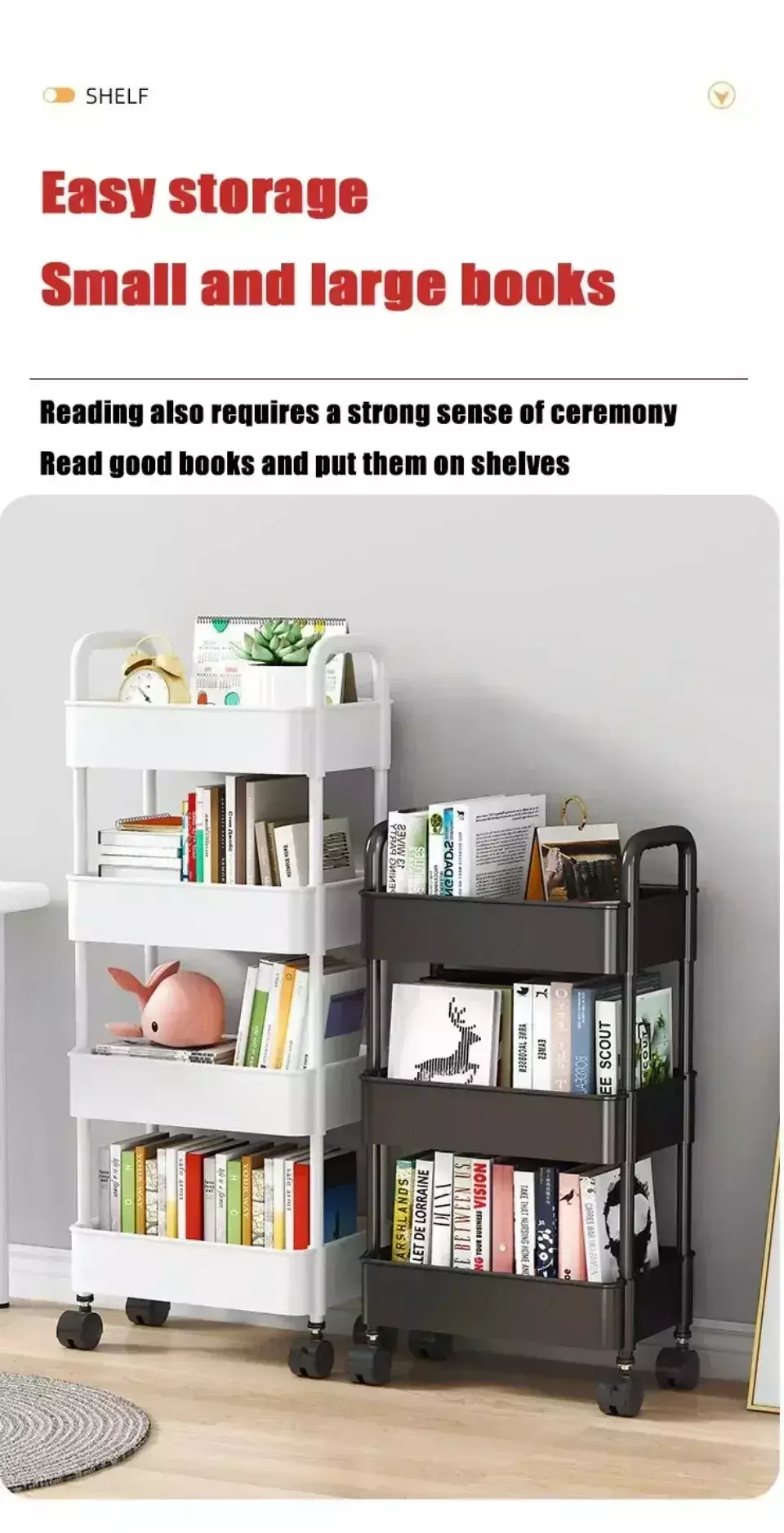 2.Carrinho de armazenamento multifuncional: projetado para economia de espaço e fácil transporte.