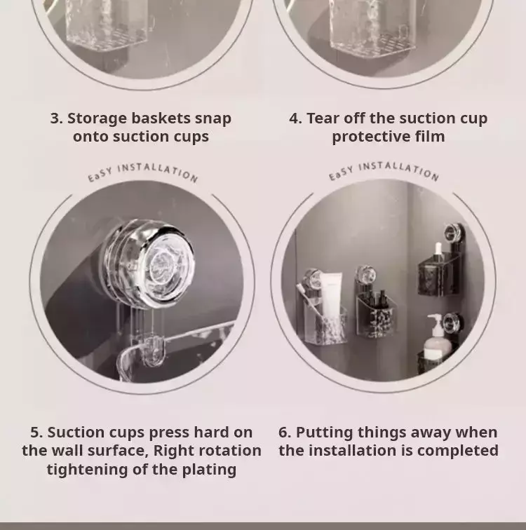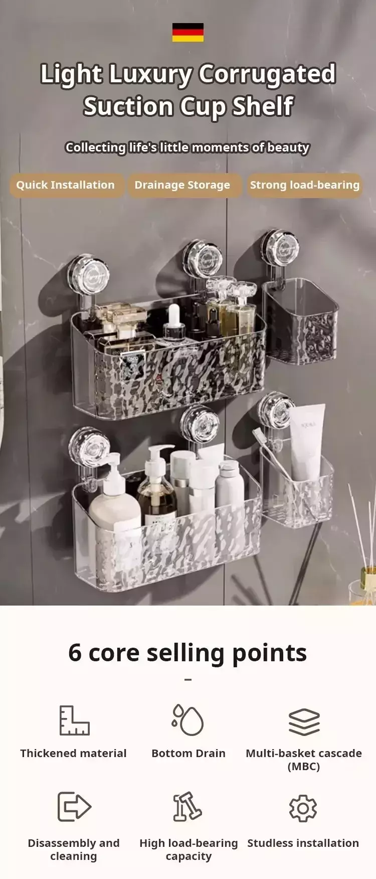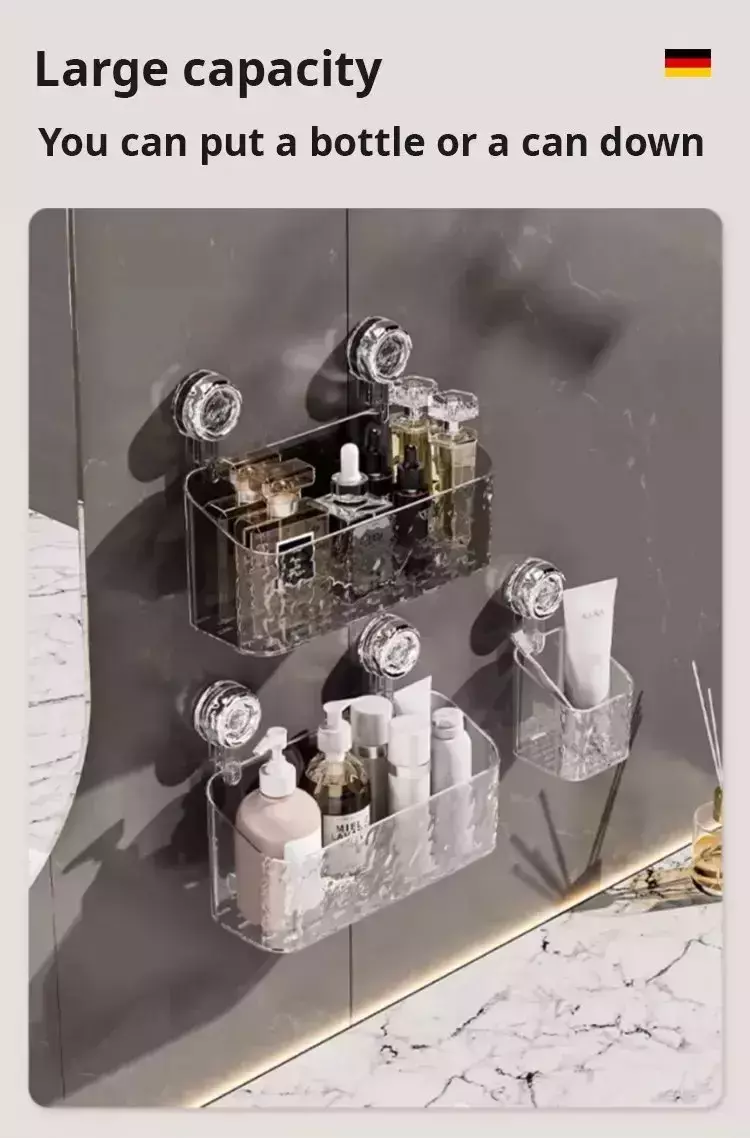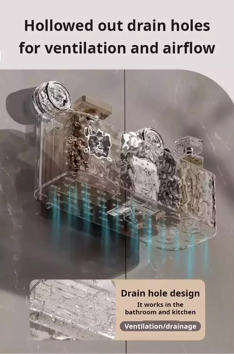 2. O detenha do rack de chuveiroRack de armazenamento de chuveiro chable com ventosa forte: O rack de armazenamento de chuveiro removível pode ser facilmente instalado e removido da parede lisa com apenas um toque na ventosa, tornando-o rápido e conveniente de usar.