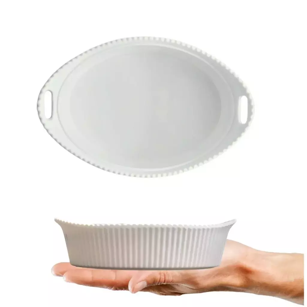 Com um design oval canelado, essa tigela não é apenas bonita, mas também extremamente funcional.